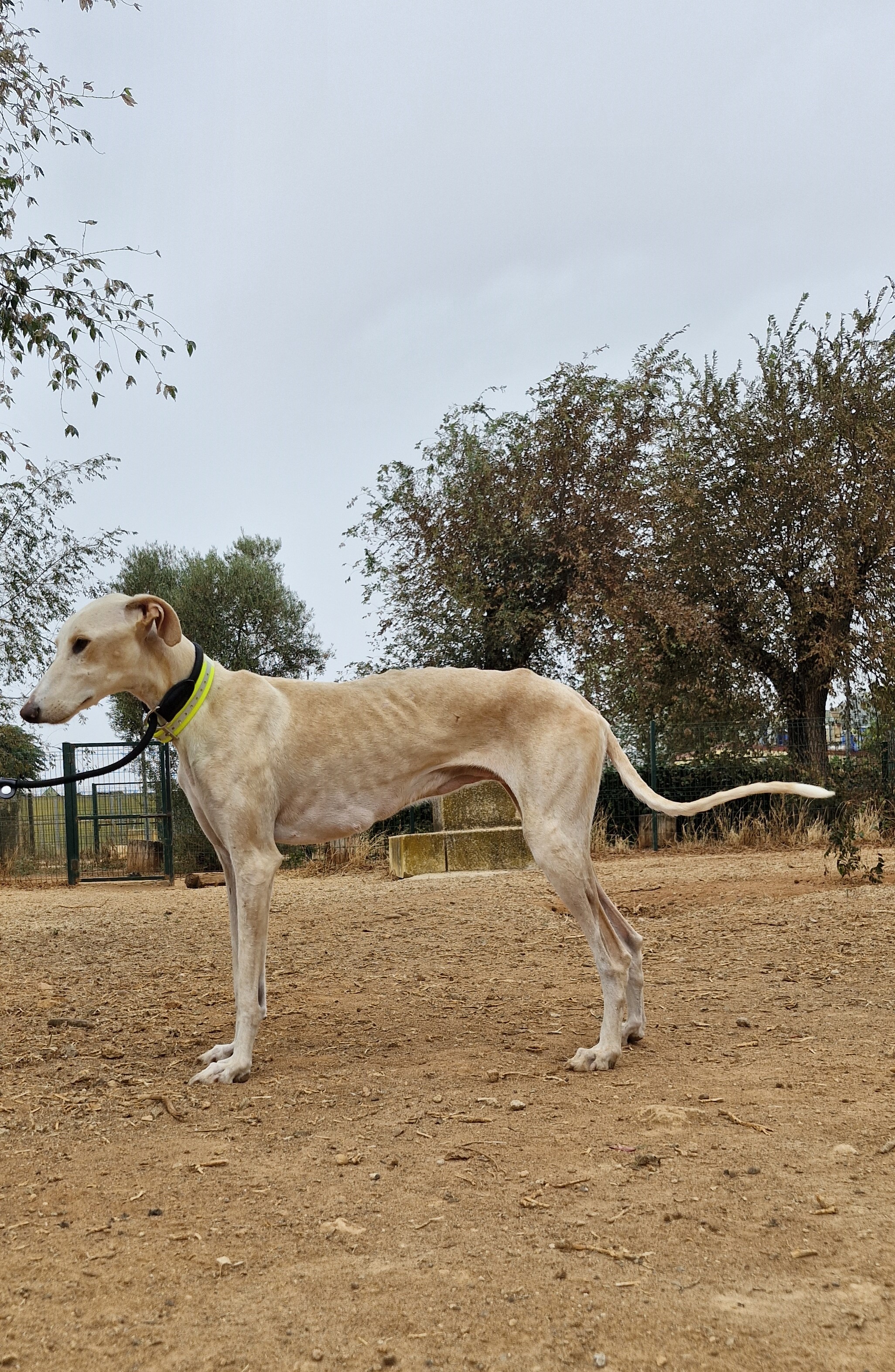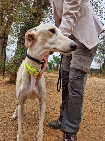 Amy est une joyeuse Galga beige âgée de 2 ans, qui pesait 22 kg à son arrivée.