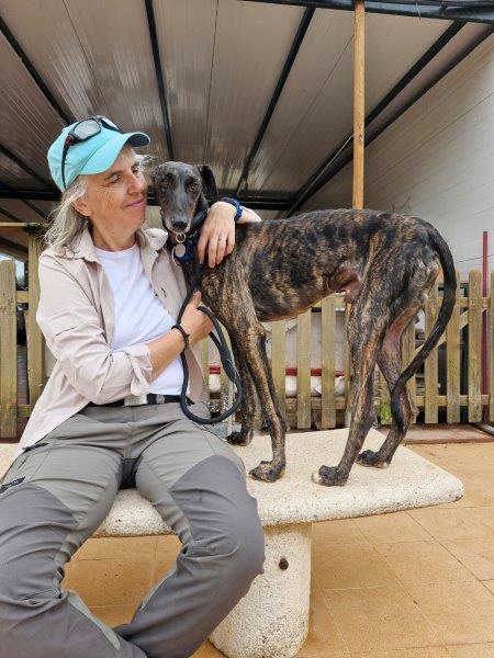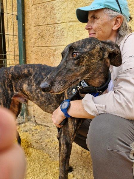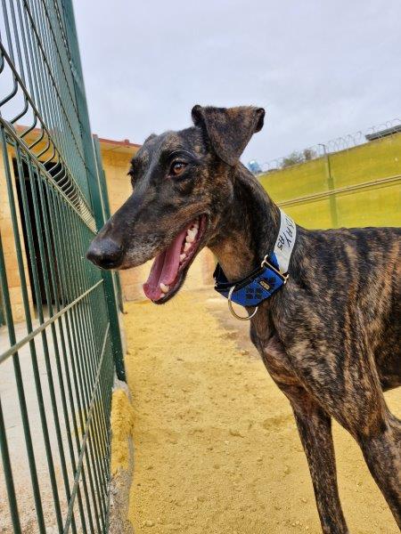 Bombay est un joyeux Galgo de 1,5 an, au pelage bringé foncé.