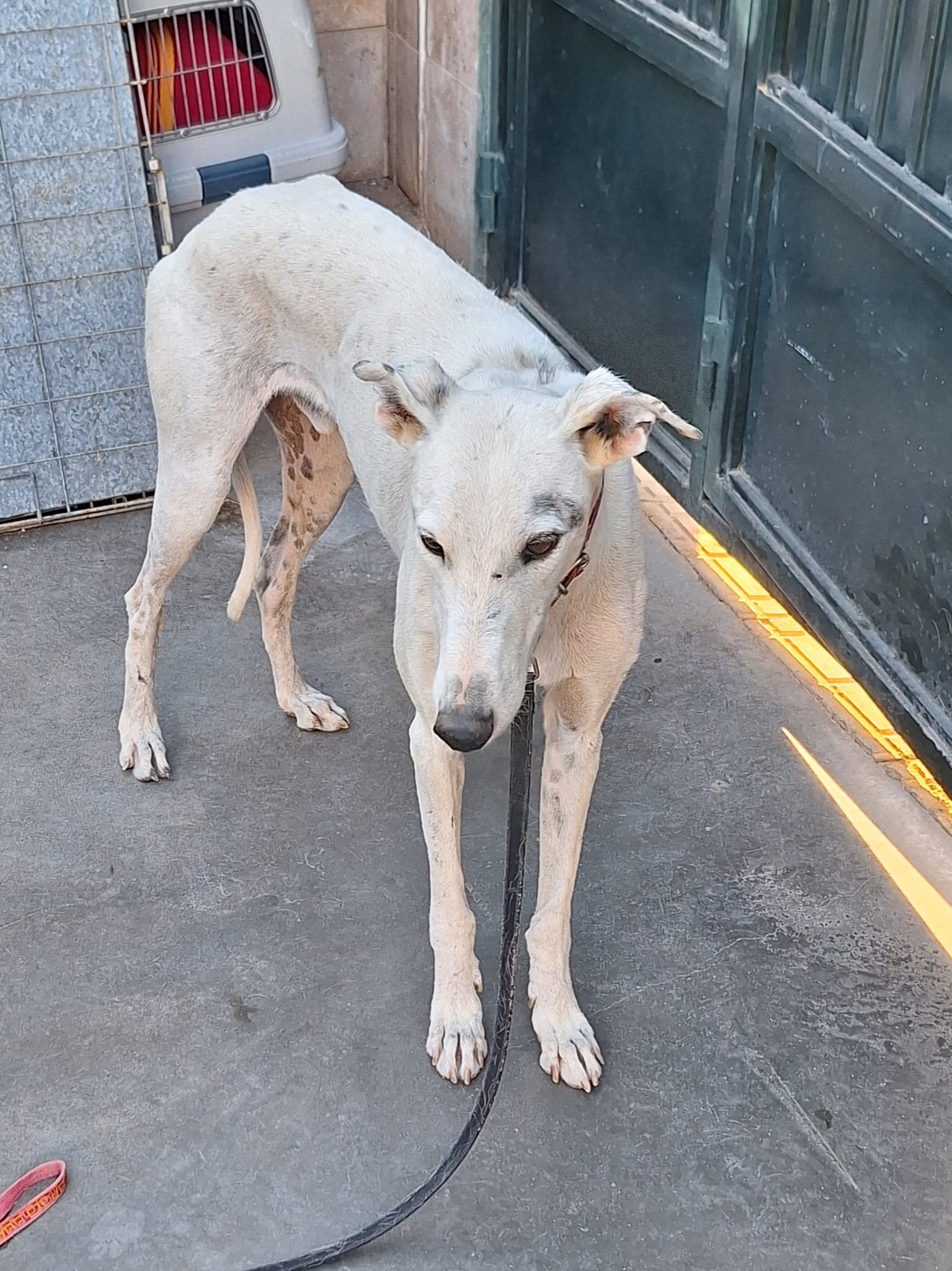 Pirata is een prachtige witte Galgo reu van 7,5 jaar oud.