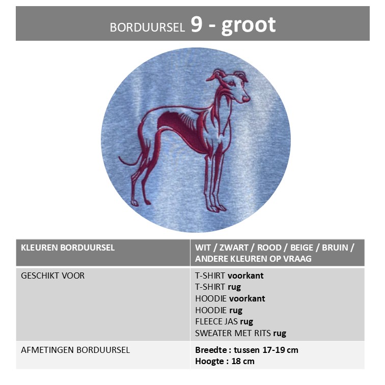 Elke sweater wordt met zorg geborduurd, en de opbrengst gaat rechtstreeks naar Galgo Save Belgium, een organisatie die zich inzet voor het redden en verzorgen van Galgo’s in Spanje.