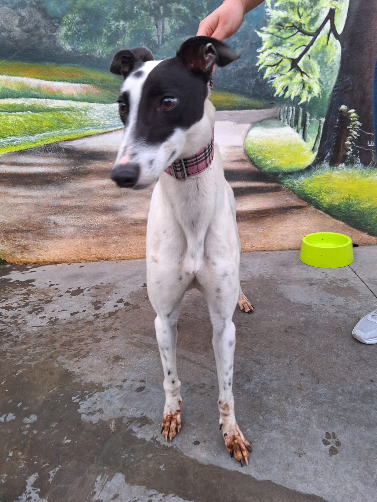 une élégante Galga d'un an et demi à l'allure gracieuse et à la nature douce.